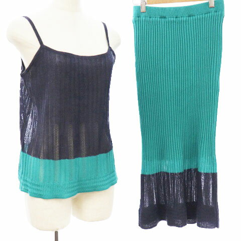 【中古】ビッキー VICKY 17SS セットアップ 上下 キャミソール スカート ロング ミモレ タイト ニット バイカラー ラメ 2 緑 紺 グリーン ネイビー /M2N レディース 【ベクトル 古着】 190710 ベクトルプレミアム店
